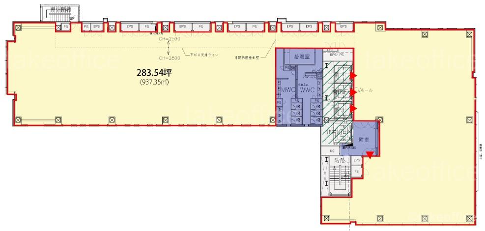 天井高 2800mm 基準階面積 281.54坪(930.71m2)