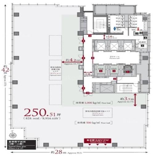 天井高 3000mm 基準階面積 251.38坪(831.01m2)
