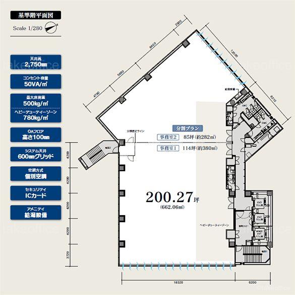 天井高 2750mm 基準階面積 200.27坪(662.05m2)