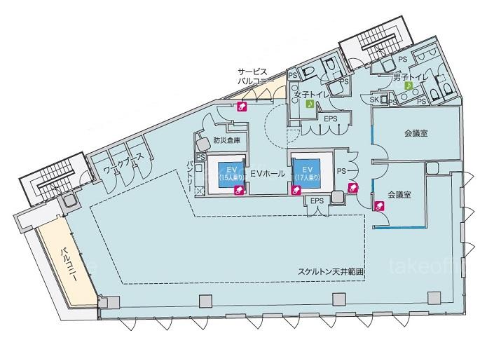 | 天井高 | 2500mm | 基準階面積 | 106.92坪(353.45m2) |
