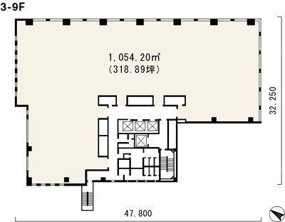 天井高 2700mm 基準階面積 318.9坪(1054.2m2)