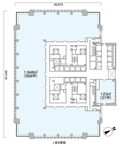 天井高 2800mm 基準階面積 690.91坪(2284m2)