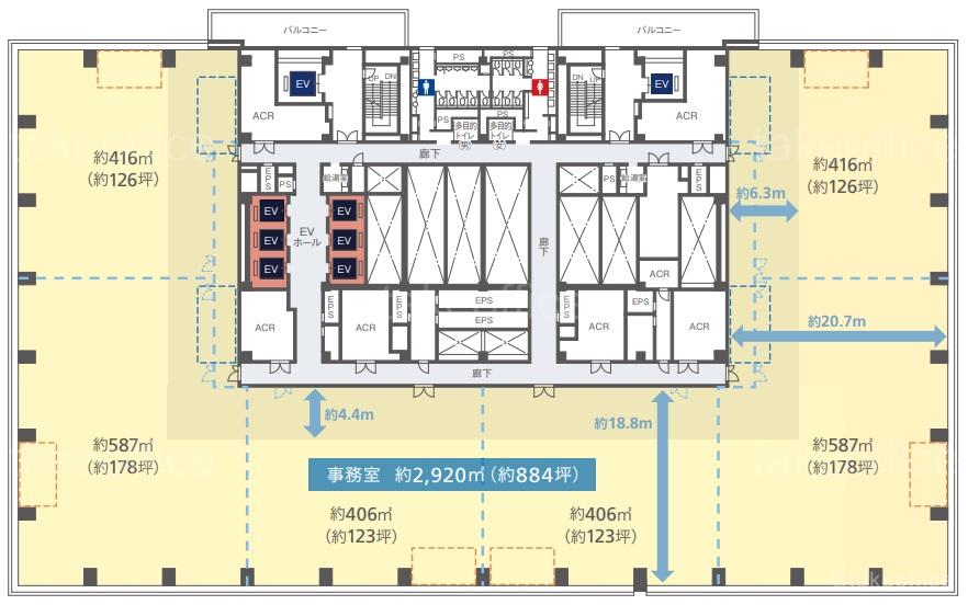 天井高 2900mm 基準階面積 883.3坪(2920m2)