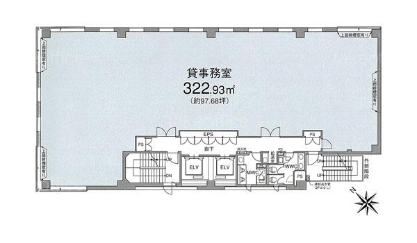 天井高 - 基準階面積 97.68坪(322.91m2)