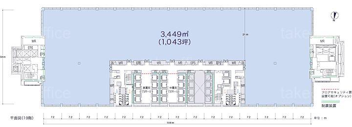| 天井高 | 2800mm | 基準階面積 | 1042.96坪(3447.79m2) |