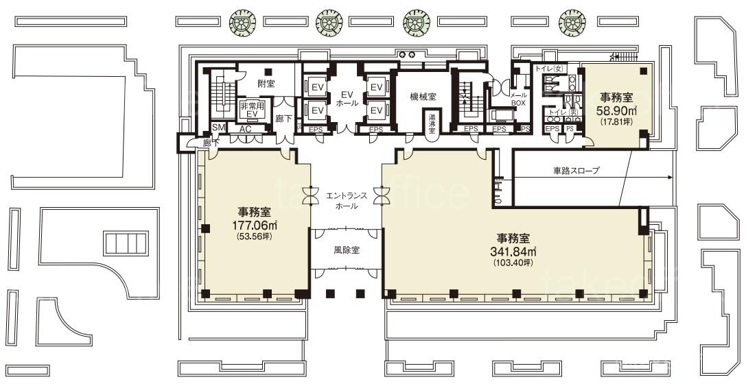 天井高 2600mm 基準階面積 252.37坪(834.28m2)