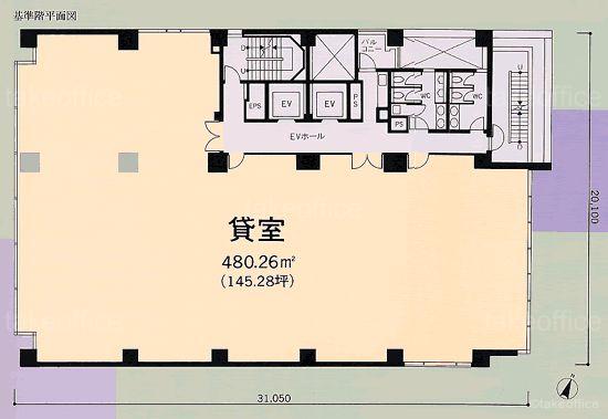 天井高 2650mm 基準階面積 145.28坪(480.26m2)