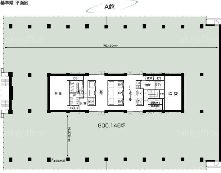 | 天井高 | 2580mm | 基準階面積 | 905.15坪(2992.23m2) |