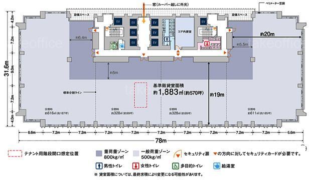 | 天井高 | 2900mm | 基準階面積 | 569.52坪(1882.71m2) |