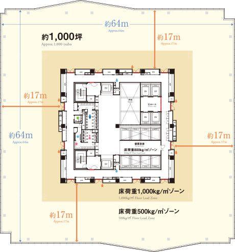 天井高 3000mm 基準階面積 1020.45坪(3373.39m2)