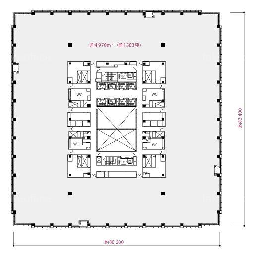 天井高 2900mm 基準階面積 1503.19坪(4969.22m2)