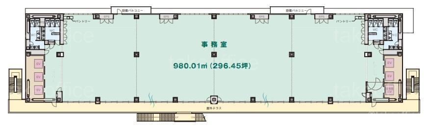 | 天井高 | 2800mm | 基準階面積 | 296.45坪(980.01m2) |