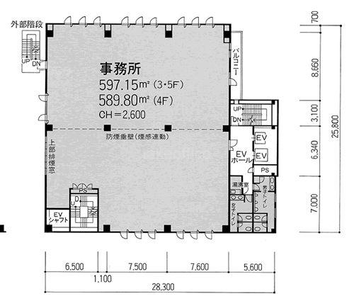 天井高 2600mm 基準階面積 180.63坪(597.12m2)