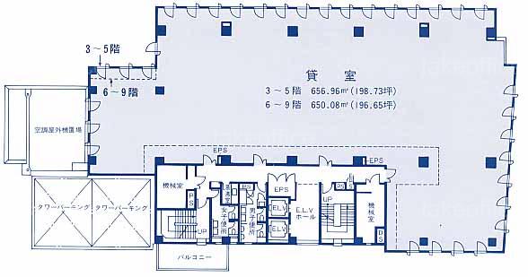 天井高 2515mm 基準階面積 196.32坪(648.99m2)