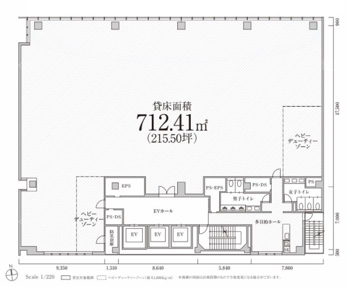 天井高 2800mm 基準階面積 215.5坪(712.4m2)