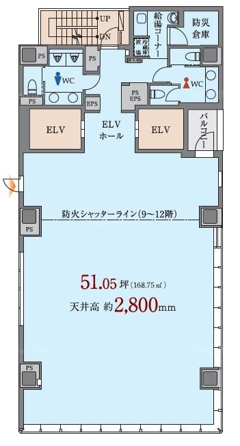 | 天井高 | 2800mm | 基準階面積 | 51.05坪(168.76m2) |