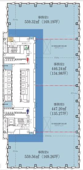 天井高 2800mm 基準階面積 615.2坪(2033.72m2)