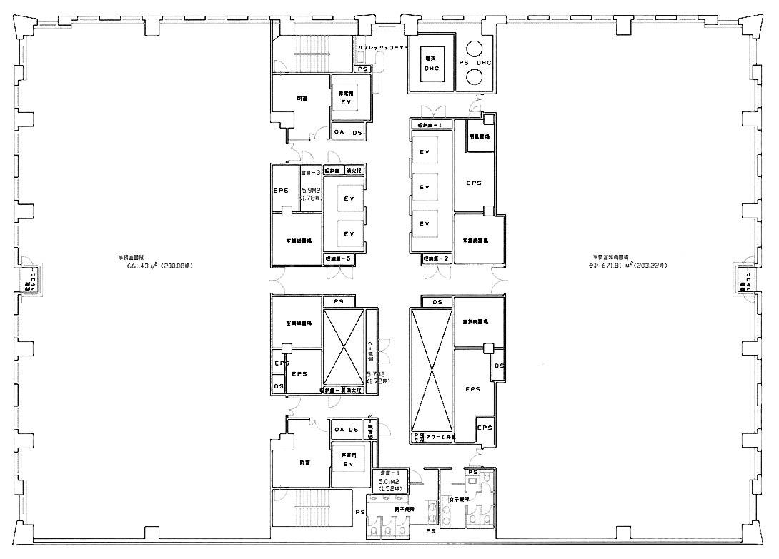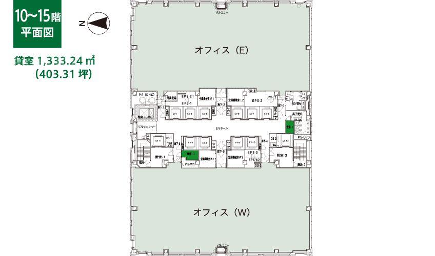 | 天井高 | 2700mm | 基準階面積 | 403.31坪(1333.26m2) |