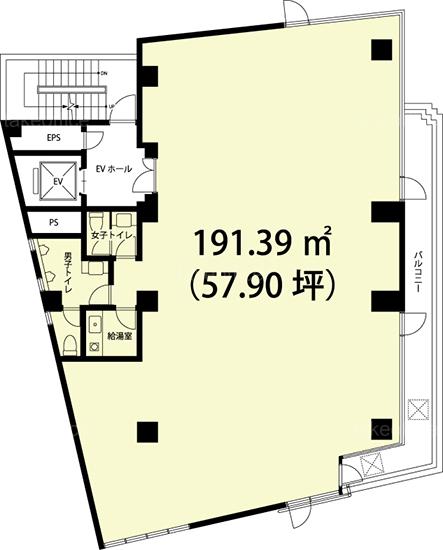 天井高 2550mm 基準階面積 57.9坪(191.4m2)