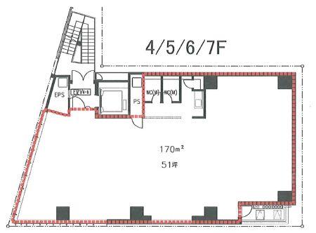 天井高 - 基準階面積 51.39坪(169.88m2)