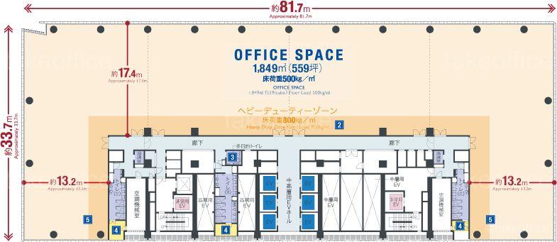 天井高 2800mm 基準階面積 558.99坪(1847.9m2)