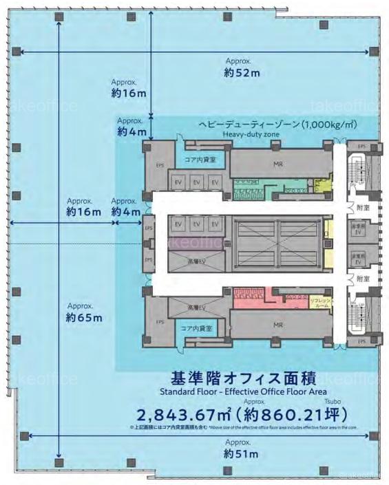 天井高 - 基準階面積 860.21坪(2843.67m2)
