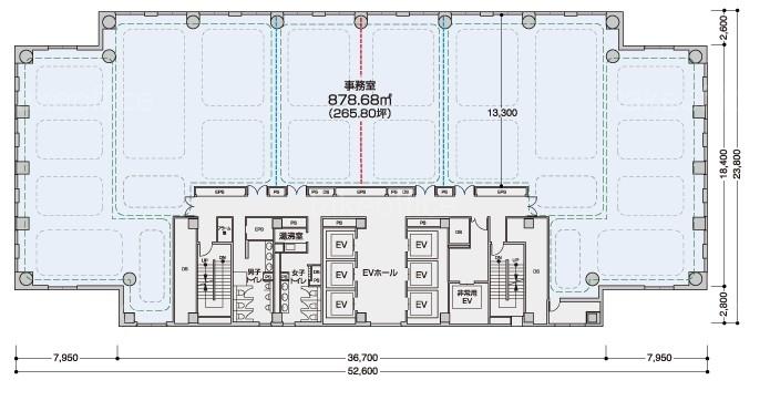 天井高 2800mm 基準階面積 265.6坪(878m2)