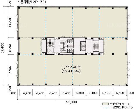天井高 2600mm 基準階面積 524.05坪(1732.4m2)