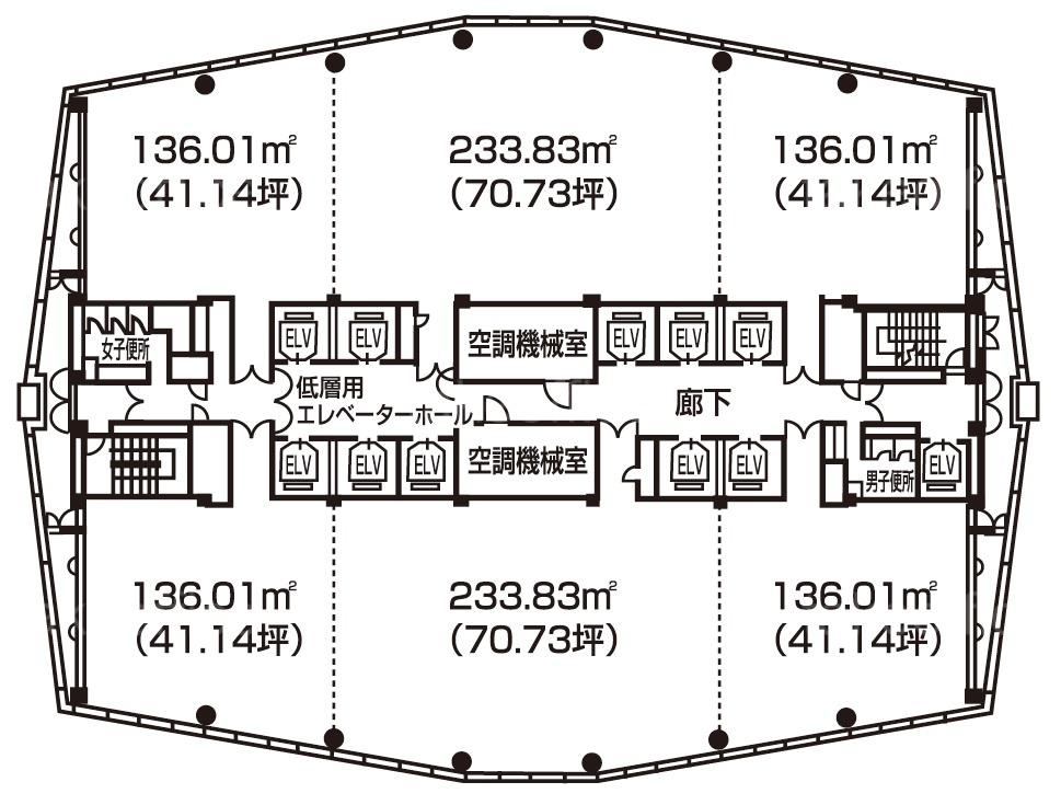 | 天井高 | 2450mm | 基準階面積 | 306.02坪(1011.64m2) |