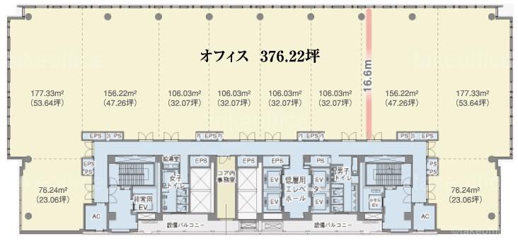 天井高 2800mm 基準階面積 376.22坪(1243.7m2)