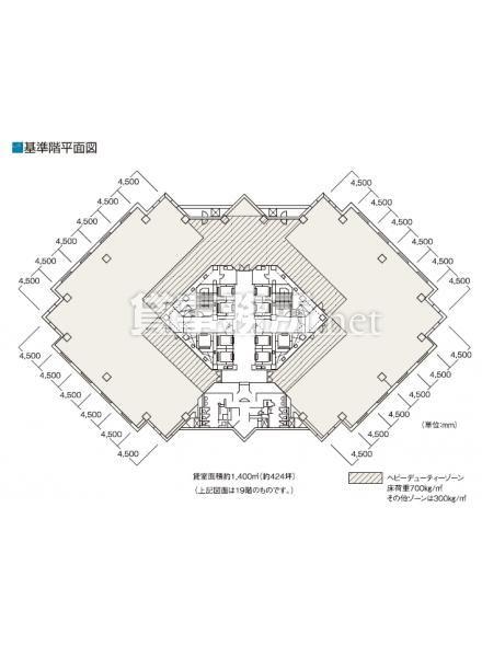 天井高 2800mm 基準階面積 423.5坪(1400m2)