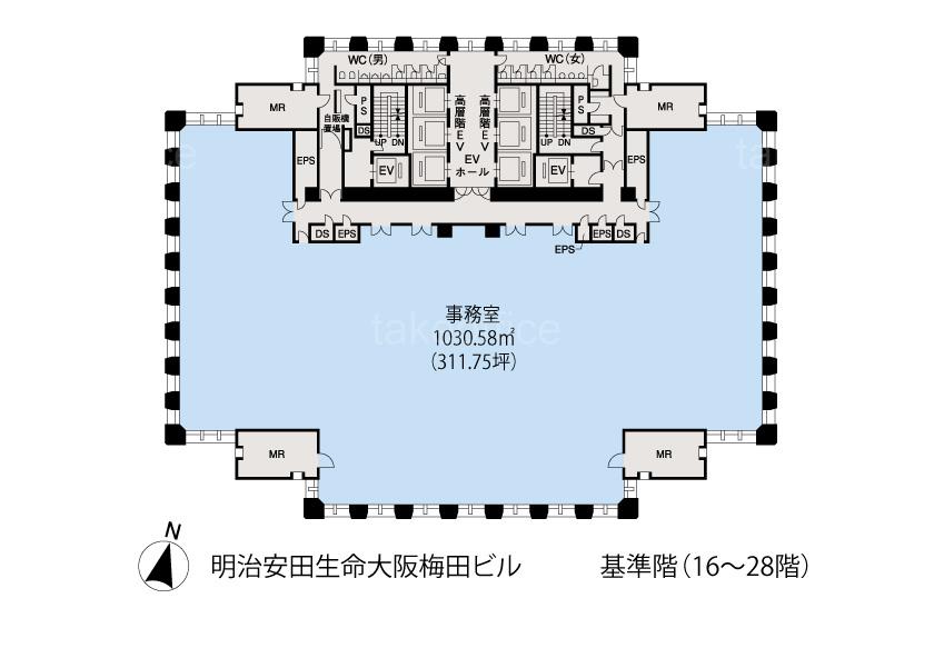 天井高 2800mm 基準階面積 311.76坪(1030.61m2)
