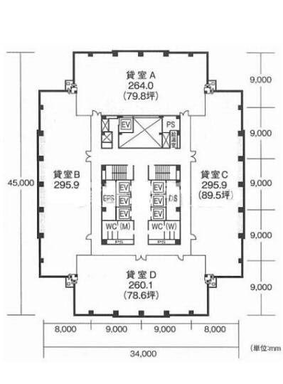 天井高 2750mm 基準階面積 368.54坪(1218.3m2)