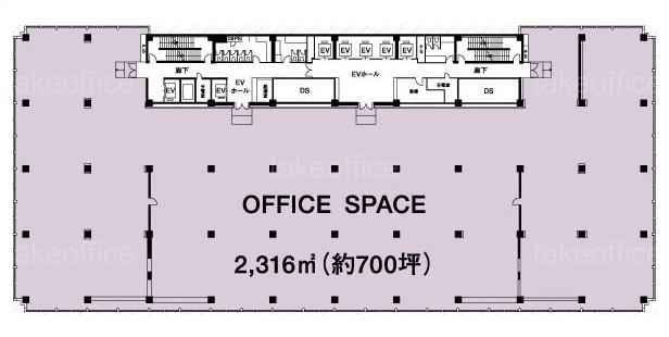 天井高 2500mm 基準階面積 700坪(2314.05m2)