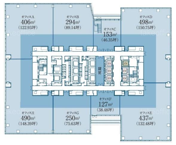 | 天井高 | 2800mm | 基準階面積 | 770坪(2545.45m2) |